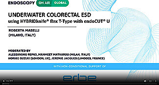 Webinaire à la demandeThis video showcases a colorectal uESD performed by Prof. Roberta Maselli using the HYBRIDknife® flex T-Type in combination with the Erbe VIO® 3 system. Prof. Maselli provides insights into how to take full advantage of working underwater, while giving tips and tricks on avoiding air bubbles and effectively using the VIO® 3 mode endoCUT® U.