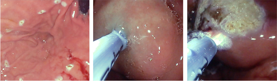 - Ablation thermique superficielle de la muqueuse à l'aide de l'APC.